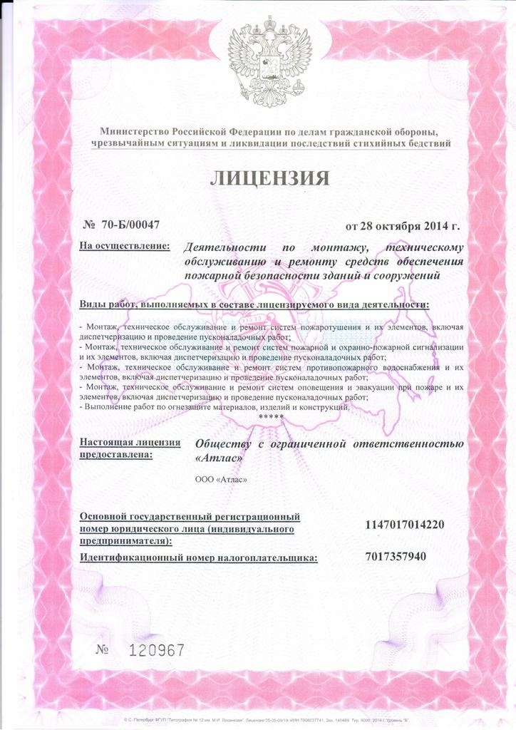 лицензия №70-Б/00047 от 28 октября 2014г