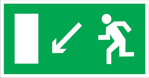 Направление к эвакуационному выходу налево внизКод знака по ГОСТ: Е 08 |