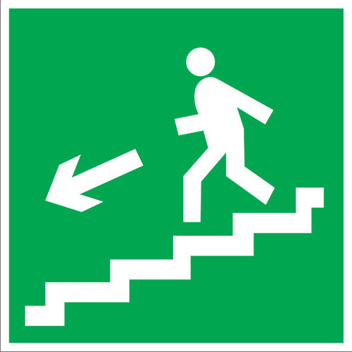 Направление к эвакуационному выходу по лестнице вверхКод знака по ГОСТ: Е 16 |